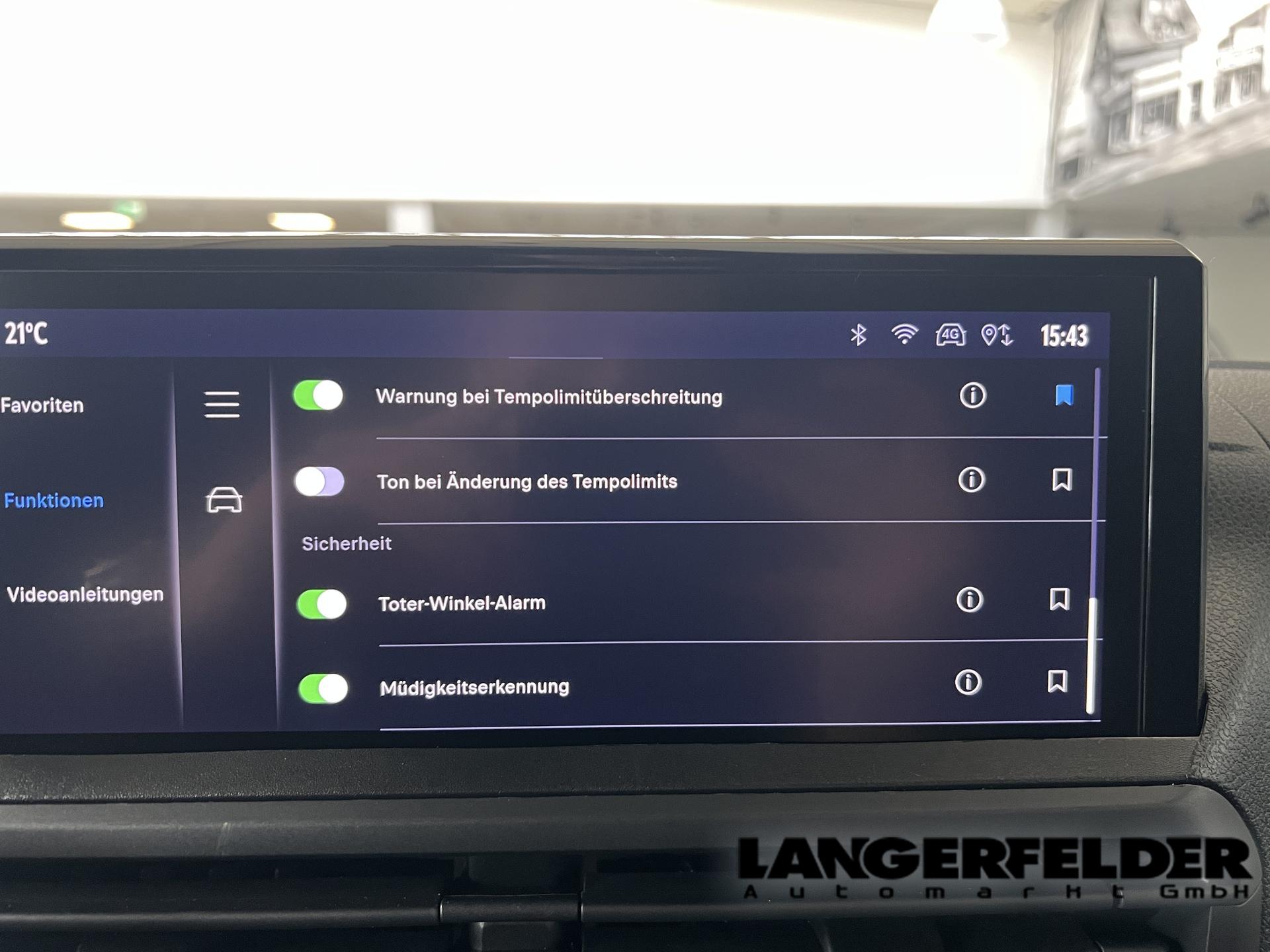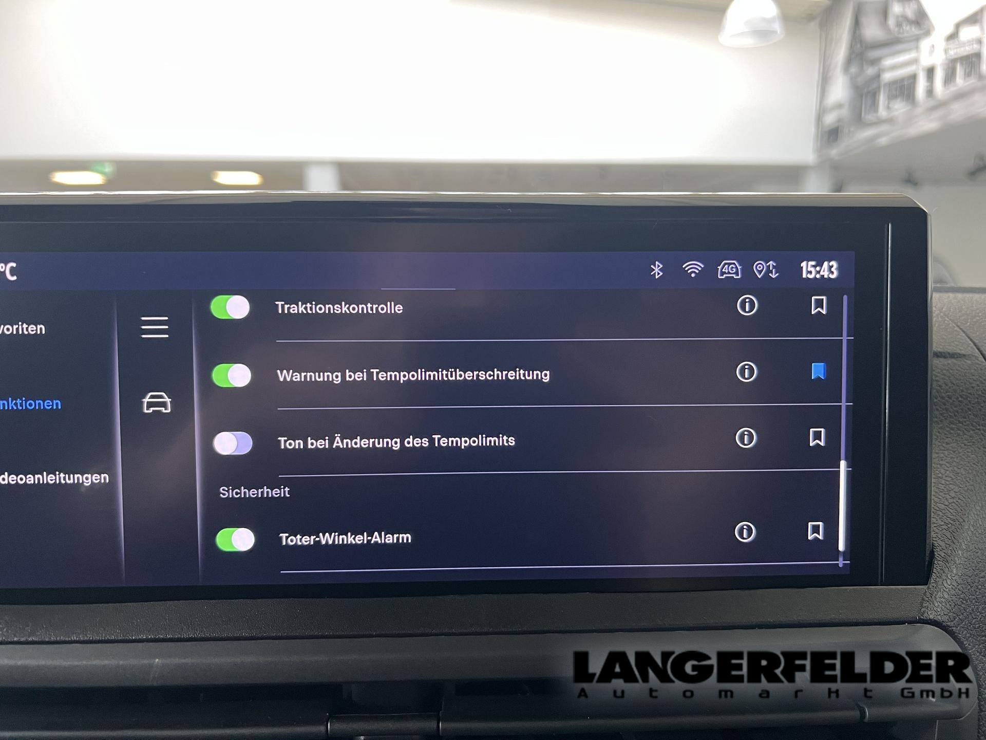 • Assistenzsysteme Regensensor, Tempomat, Notbremsassistent (City-Safety), Berganfahrassistent, Spurhalteassistent, Verkehrzeichenerkennung, Toter-Winkel-Assistent, Müdigkeitserkennungs-Sensor, Abstandswarner, Geschwindigkeitsbegrenzer